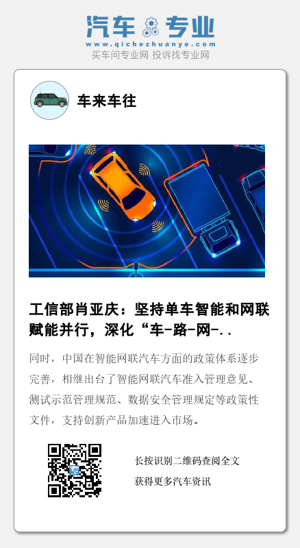 同时,肖亚庆还认为,应该加快强关键技术创新,支持龙头企业和制造业创新中心,聚焦关键技术,开展联合攻关,推动整车平台、自动驾驶平台等研发及产业化。同时,要加快规模化示范应用,以城市/区域为载体,深化“车-路-网-云”协同发展,扩大北斗导航、5G通信等技术和产品应用。