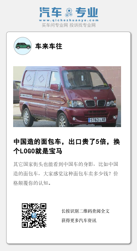 不光在瑞士,澳大利亚、荷兰、英国等国家也能看到中国面包车的身影,有的还贴宝马LOGO,人送外号“中国造小宝马”,价格也不便宜,以英国为例,一辆东风小康面包车的起售价是8495英镑,如果加上注册费和增值税,上路的价格超过1万英镑,约合1.37万美元,这个价格是最低配,更不要说高配和顶配了。那么另一个问题来了,为什么很多厂家不乐意造这种面包车呢?