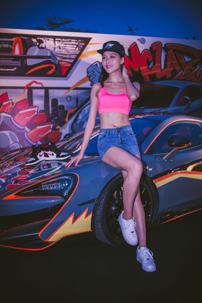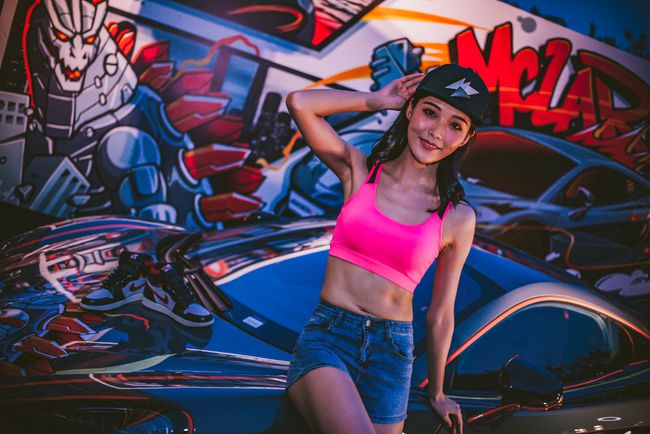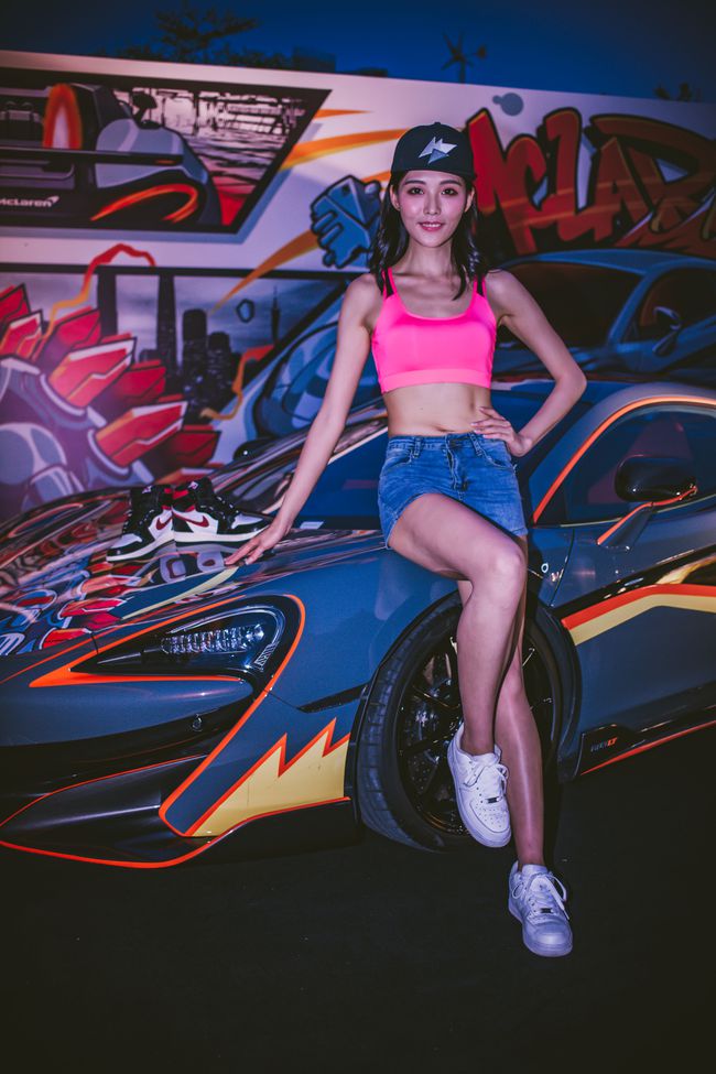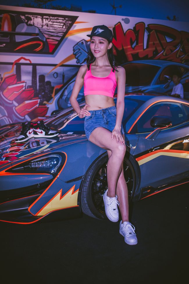 韩国美女车模吊带背心牛仔热裤秀小蛮腰大长腿