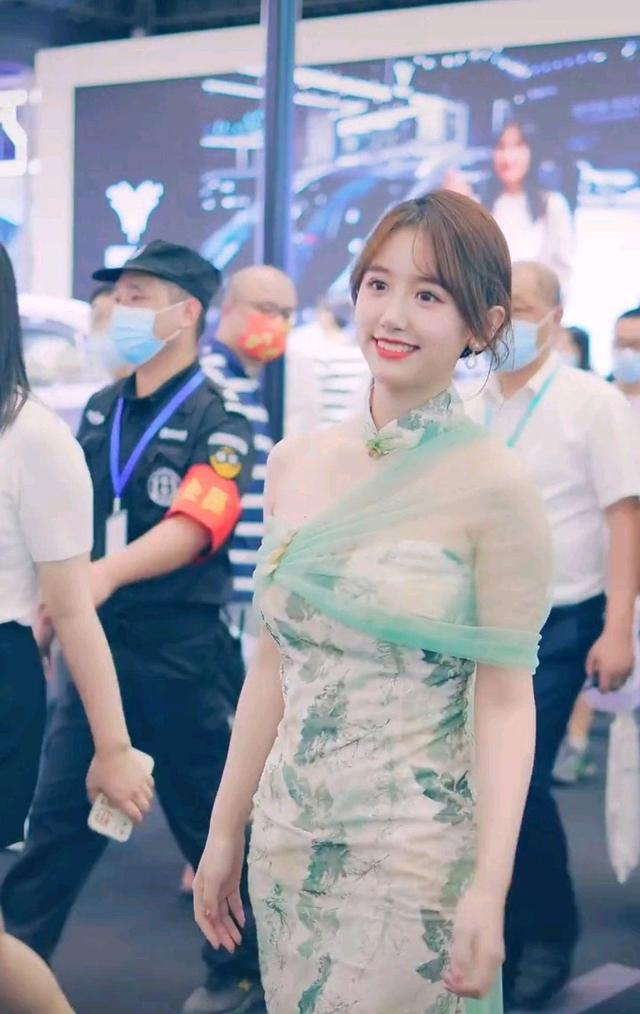 徐依莎身穿青色旗袍化身车模,让车展更有看点,当然也有很多网友回答:别挡我看车,也有网友觉得徐依莎变胖了很多。