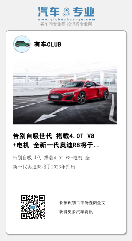 奥迪市场总监沃特曼(Wortmann)曾经对外媒表示:“R8的继任者不仅仅是装有电机的R8,它将会有所不同,从而使其在新的电气化时代中,依旧可以成为奥迪品牌的标志。”所以,从沃特曼(Wortmann)发表的言论中我们推测奥迪还有很大概率将推出纯电版车型。