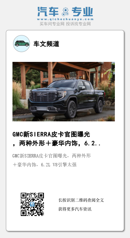 整体来说,新款SIERRA 1500对外形进行针对性调整,符合当下审美趋势变化。内饰更是实现全新升级,档次上让人难以忽视。其动力系统丰富多样,输出方面充沛强劲。由于排量等原因,该车不会引进国内市场,但这丝毫不影响其在网络上热度。新车在多个方面都值得自主品牌认真学习,在将来研发新款车型时多多借鉴。毕竟随着人们用车需求变化,皮卡市场将会迎来新的增长高峰。届时谁能抓住新的风口,那就会在销量大战中占据主动,抢占更多生存空间。