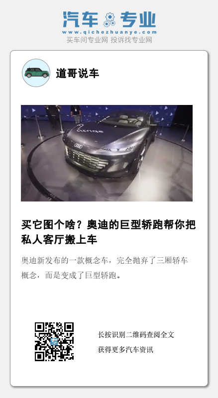 现在造车也开始内卷了,三厢轿车已经满足不了奥迪了,奥迪新发布的一款概念车,已经完全抛弃了三厢轿车这个概念,而是变成了巨型轿跑。内凹式六边形进气格栅相比于当前应用的大面积镀铬饰条格栅,带来强大的气场。轴距为3190mm,真是配得上“巨型”二字。而这巨大的轴距正是为“私人客厅”服务的。