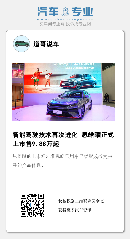 思皓曜的上市标志着思皓乘用车已经形成较为完整的产品体系,满足不同消费群体的购车需求,而HOL-Pilot思皓智能驾驶技术的发布则标志着在思皓智能技术方面进一步赋能。