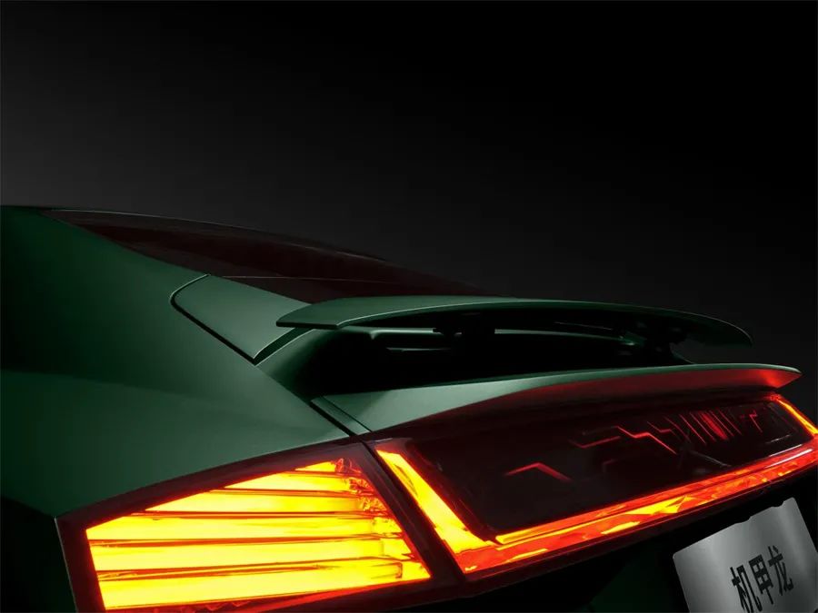 外观上,机甲龙凌厉的战斗前脸霸气十足、160°黄金折角机械几何结构以及主动进气格栅勾勒出极具机械感的轮廓,尽显机甲本色。而全系标配的矩阵式远近一体LED前大灯更是点睛之笔,为整车赋予极高的辨识度。车身侧面刚劲锋利的线条与双线交汇的立体射线,更是在视觉上勾勒出前所未有的机械战斗姿态,给人留下无限的想象空间。尾部最大的吸睛之处在于率先搭载Mini-LED外显屏技术的智能尾灯,配上双层动感尾翼,运动性能十足且感观体验瞬间拉满。