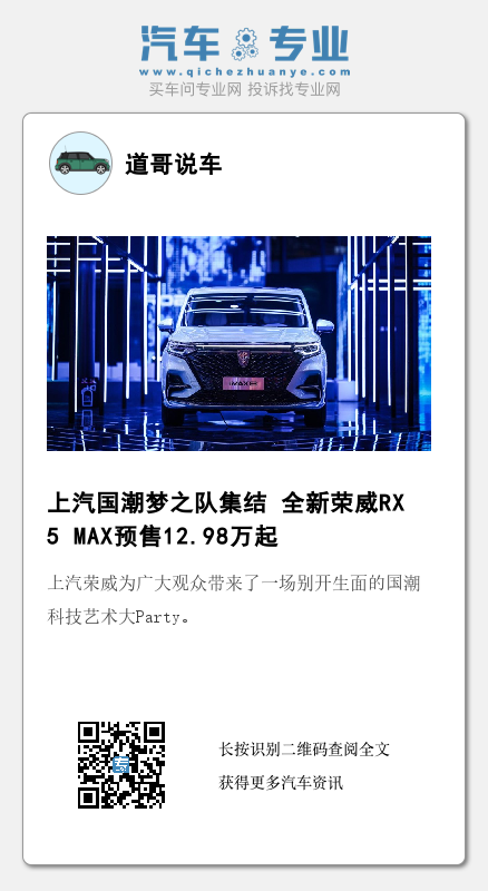 在车展现场,全新荣威RX5 MAX以12.98万至16.58万元正式开启预售;全新荣威RX5 eMAX公布预售价16.98万至18.98万元;荣威iMAX8四座创世版、袋鼠版、纯电版以及i6 MAX、全新i5、全新i5 GT、全新Ei5、全新RX5 PLUS、科莱威火星版等联袂亮相,配合更潮更酷的展台,全面展现荣威新一代国民车的全新风貌与超强产品阵容,为广州车展增添了一道亮丽的风景。