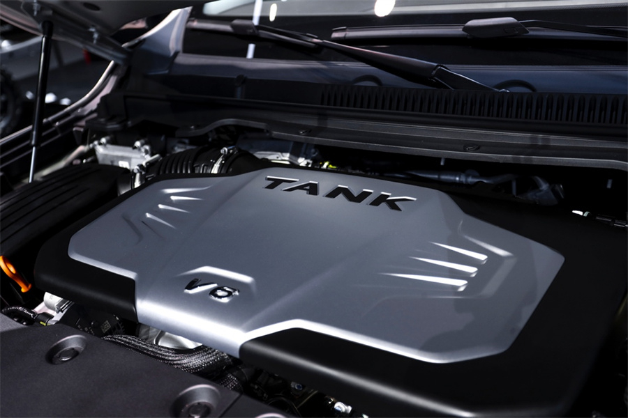 坦克500搭载长城自主研发的3.0T V6+9AT动力总成,可实现最大功率260kW;在1000rpm可爆发出340N•m超强扭矩,峰值扭矩可实现500N•m。凭借双增压、双喷射、米勒循环等9大核心技术,可实现7.3秒破百;在保证强大动力的同时,兼具足够优秀的燃油经济性,WLTC综合油耗百公里10.79L。