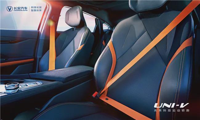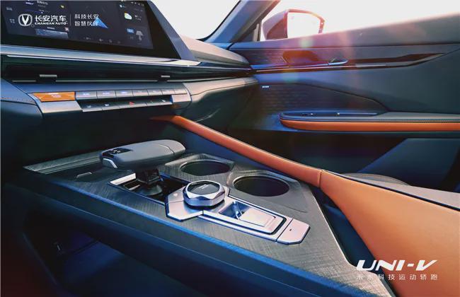 内饰方面,UNI-V追求的是简洁和运动感,车内多使用非对称设计,悬浮式的仪表盘、悬浮式的中控屏均是如此,配合中控、座椅、中央扶手、门板等区域的亮色点缀,有效地增强了车内的活力。源自赛车设计理念的双D型运动方向盘,搭配随动式换挡拨片,瞬间点燃驾驶激情,此外,战舰换挡手柄设计,造型科幻、动感,搭配橙色装饰线点缀,又添前卫、时尚气息。