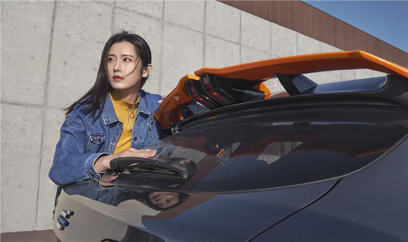 在车尾部,双边四出的排气管让这台车的运动感爆棚,搭配夸张的下方扰流板和橙色配色,完美复刻了赛车的设计风格。最夸张的就是上方的破风滑翔运动尾翼,形似飞机机翼的造型,让这台车下一秒好像就要快到起飞。