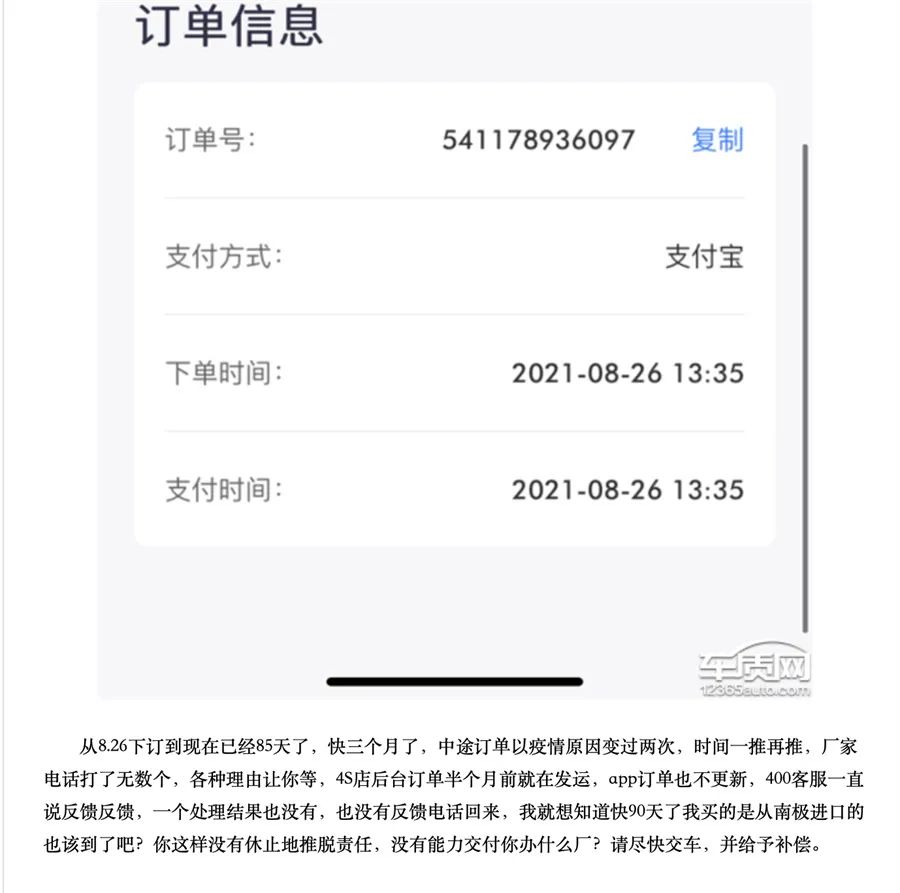 值得一提的是,有消费者焦急等待,但有消费者却能够很快提车。“等车72天,车辆于11月17日发货,至今仍未出工厂,打厂家投诉电话每次都是敷衍了事,一问三不知,同一家4s店购车的朋友18号发货,2天到车,第三天就提车了,想问下厂家是否真实给我发车了,还是发了个假物流,为什么7天了还是在原地?“有下订车主如此表达疑问。无独有偶,另外也有部分消费者反映类似问题,在投诉中叙述,朋友订单是11月3日下单的,本人的订单11月3日下单的,相差三天,但11月3日的订单却已经出库,而11月1日的订单却还在排产,“希望有关部门处理一下这种不公平问题,应该尽快交车”,该消费者说到。