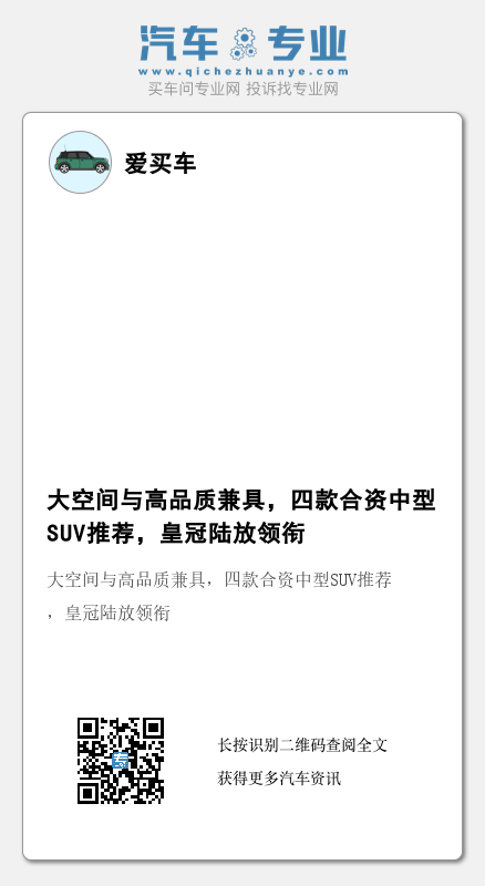 以上就是买车君推荐的高品质与大空间兼具的合资中型SUV,其中既有关注度较高的新款途观L以及皇冠陆放,也有新出炉的充满个性的福特EVOS。大家可以根据自身需求和喜好进行选择。不知道你最喜欢哪一款呢?