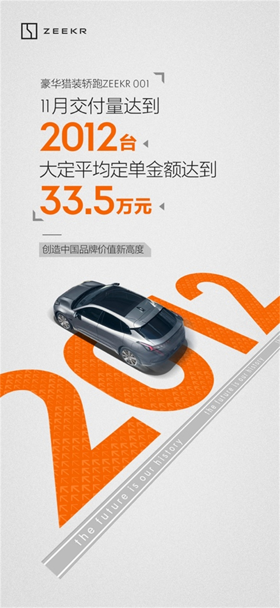 今年10月23日,极氪的首款车型ZEEKR 001正式开启交付,标志着极氪迈入全新的发展阶段。而在刚刚过去的11月,ZEEKR 001首个完整单月交付量达到2012台,体现了极氪从生产到交付的体系化能力。