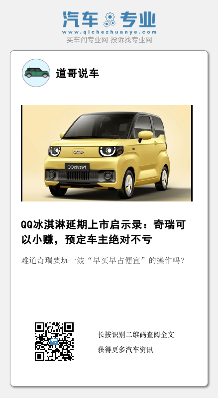 如今,QQ冰淇淋虽延期上市,但根据官方消息,正常交付是可以做到的,无非是晚一些站上电动汽车销量排行榜而已。当然,关于QQ冰淇淋延期上市的消息中,恐怕最耐人寻味的还是“多退少不补”这句话,这款车正式上市后,无论是遵循“多退”还是“少不补”的规律,预定车主似乎都不亏。而如果是遵循“少不补”,甚至还能占点便宜。