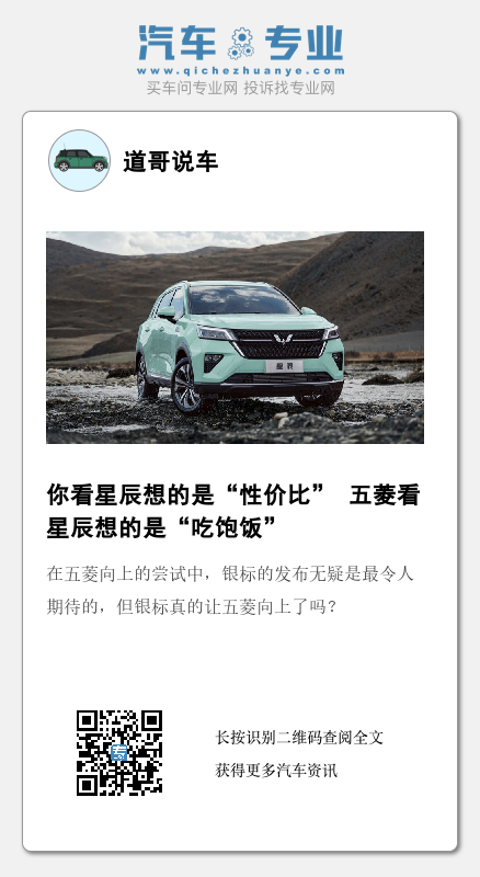 似乎,五菱银标成功了,但转念一想,五菱银标有好像没有完全成功。如上述业内人士所言,银标,是五菱向上突破的一次尝试,但从产品来看,两款银标车型依旧紧握“性价比”的武器,甚至以五菱星辰的配置,这款车都没有突破10万元的价格,对于五菱品牌向上来说,这两款车似乎并没有建立不世功勋。