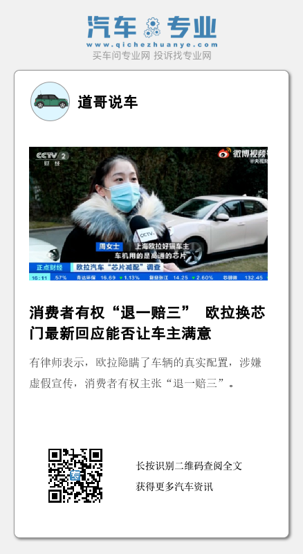 对于欧拉私自降级芯片的行为,有律师表示,欧拉提供的车辆与消费者签署的购买合同不一致,隐瞒了车辆的真实配置,涉嫌虚假宣传。根据《消费者权益保护法》的相关规定,消费者有权主张“退一赔三”。