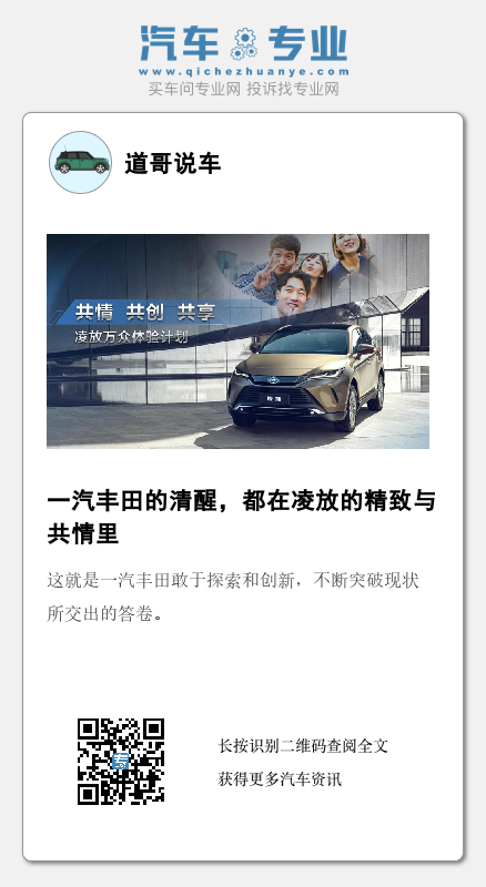 显然,从凌放上市的那一刻起,任谁都能欣慰地看到,一汽丰田已开启积极融入中国汽车市场的新时期,并且把更多精力投入到了新品的驱动上。凌放将“优雅从容”与“高端雅致”作为核心产品力标签,让用户的生活变得更加高级、优雅,再加上与用户共情、共创、共享的凌放万众体验计划,背后满含着的是一汽丰田践行“致真至极”品牌口号,在用户思维上的转变和面向市场转型的决心。