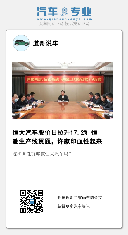 这种血性能够救恒大汽车吗?答案是无法预料的,但从目前流出的信息看,恒大汽车至少有了一些焕发活力的迹象。业内人士分析称,恒驰生产线全线贯通的消息,对于恒大汽车自身以及投资者信心来说都是一次具有提振性的利好消息。事实上,此前看似造车没进展,母公司又无法提供输血的恒大汽车,也曾陷入过欠薪的泥潭。据恒大汽车内部人士透露,目前拖欠薪资已经补的差不多了。