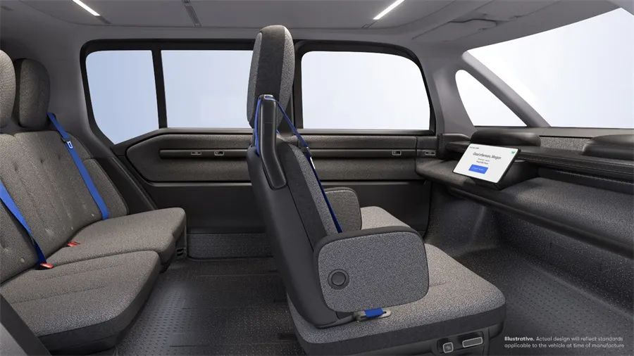 在外观上,该车型具有离地间隙低、地板造型平整等特点,同时取消了B柱设计,为乘坐者营造充裕的头部和腿部空间,带来更便利的上下车体验。与此同时,该车型面向无人驾驶应用场景,采用更加灵活的座舱设计,可支持有驾控机构和无驾控机构两种方案,以及多种座椅布局。根据规划,该车型交付后将搭载Waymo旗下的Waymo Driver无人驾驶解决方案。