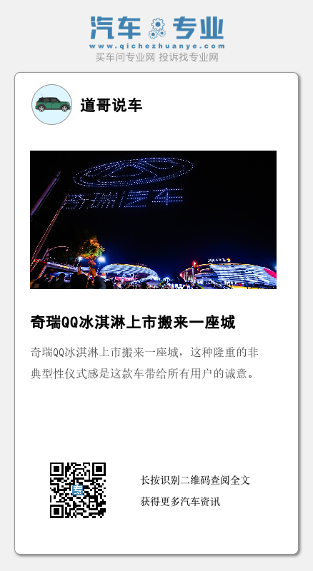 一生终一事,一城忠一车,奇瑞QQ冰淇淋上市搬来一座城,这种隆重的非典型性仪式感是这款车带给所有用户的诚意。