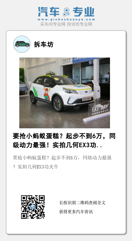 虽然几何EX3 功夫牛没有褪去“油改电”的外衣,也没有用上更加先进的电气化平台,但请不要忘记它起售价格不到6万元的事实,换句话说“这个价格你还要什么自行车”。通过本次实拍体验,我们能看到几何EX3 功夫牛在内饰设计和空间表现上的优势所在,再加上322公里的纯电续航里程,日常城市通勤代步绝对是个利器,注重性价比且“求稳”的消费者真的可以看过来。