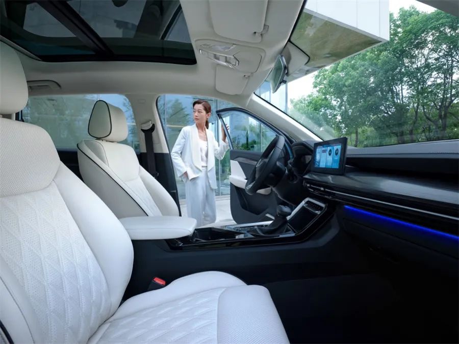 当然,星辰的美感还不只是光影,其他诸如1002mm*800mm超大开放式全景天窗、采用双缝线绗缝工艺的座椅舒适加持、10.25英寸悬浮高清中控屏都把星辰的氛围感拉满,让年轻人可在其中找到轻奢之感。