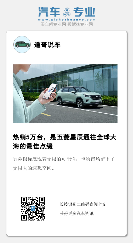 另外一个角度,五菱银标的车型都是全球化车型,五菱星辰未来也不会例外。向内,五菱星辰将会争取首购年轻家用人群以及有消费升级需求的五菱基盘用户;向外,五菱星辰会将中国解决方案提供给全球,尤其是新兴市场的主流乘用车消费者,向全球展示中国制造的水准与品质。