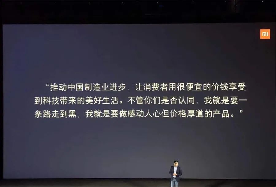 2018年武汉大学举办的6X发布会上,雷军回顾了在武汉大学的生活,他说,在看完《硅谷之火》里乔布斯创立苹果的故事之后,一个人在操场上走了一圈又一圈。紧接着,发布会的展示PPT切换到一行黑底白字:“我就是要一条路走到黑,我就是要做感动人心但价格厚道的产品。”
