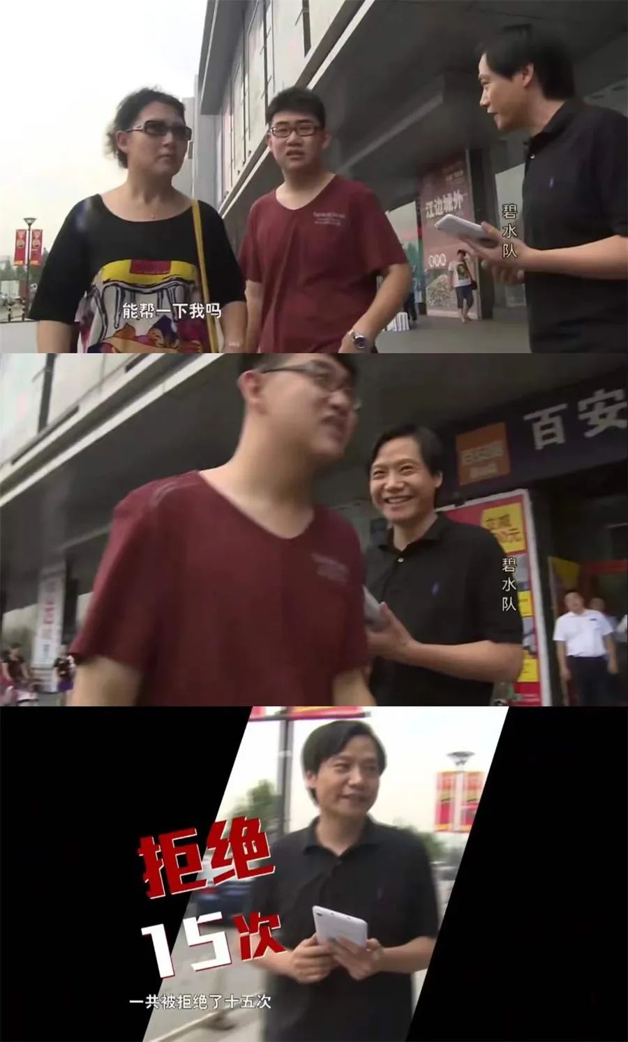 在2013年和刘强东参加江苏卫视的节目,节目组要求两人在街头拦住路人参与问卷调查,被拒绝了15次的雷军那尴尬的讪笑,展露了雷军内向理工男的那一面。