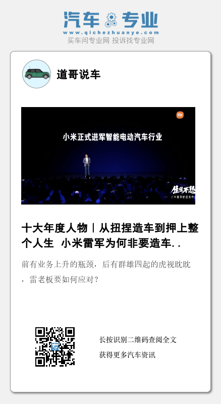 小米要造车的消息,每年都要传一遍,直到去年2月小米还回应称“暂时没有。”但在去年3月底的春季发布会上,雷军终于官宣小米将要造车,并称“这将是我人生中最后一次重大创业项目,我愿意押上我人生所有积累的战绩和声誉,为小米汽车而战!”