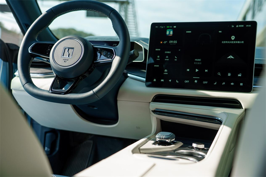 打开车门进入车内,会发现ZEEKR 001的内饰设计在豪华和运动之间更偏向于豪华。8.8英寸全液晶显示屏、15.4英寸多媒体触摸屏,三辐式多功能方向盘与短小的电子换挡机构这都是彰显豪华的常规操作。
