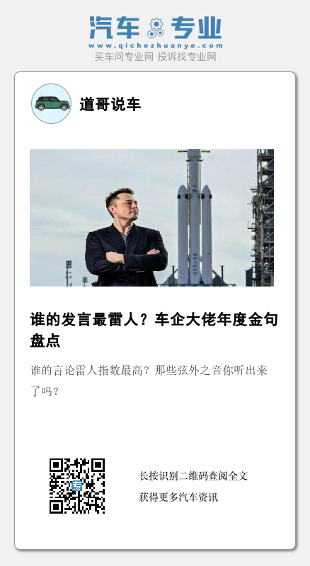 对此,《道哥说车》编辑对2021年度车企大佬们的金句进行盘点,究竟谁的言论雷人指数最高?雷人之外那些弦外之音你听出来了吗?