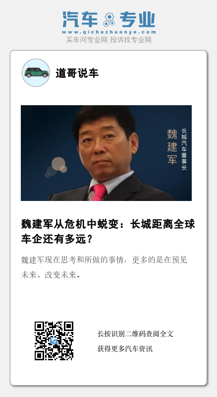 对此,天生热爱汽车的魏建军说:长城的每一天都在经受考验。因为,掌握着千亿市值的企业家,需要魄力,更需要的是战略。魏建军现在思考和所做的事情,更多的是在预见未来、改变未来。