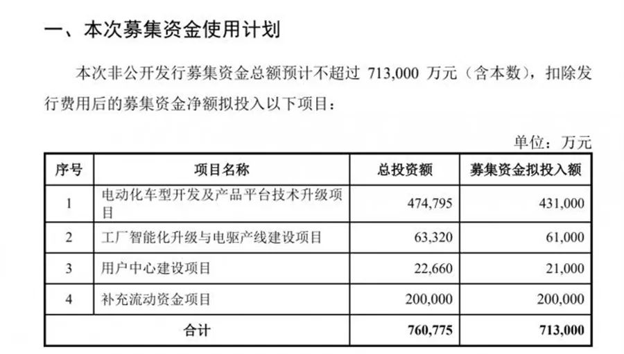 谈及本次定增背景,小康股份表示,新能源汽车行业高速发展,国家和地方政府也陆续出台政策大力支持新能源汽车发展,同时,传统汽车产业转型升级,进入多元化发展阶段。公司认为,通过实施募投项目,公司可打造核心竞争力,改进生产工艺,提高过程质量。