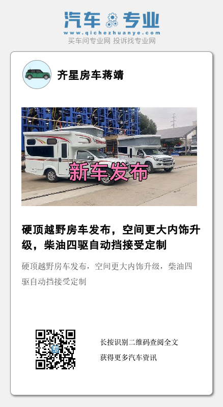 硬顶越野房车发布,空间更大内饰升级,柴油四驱自动挡接受定制