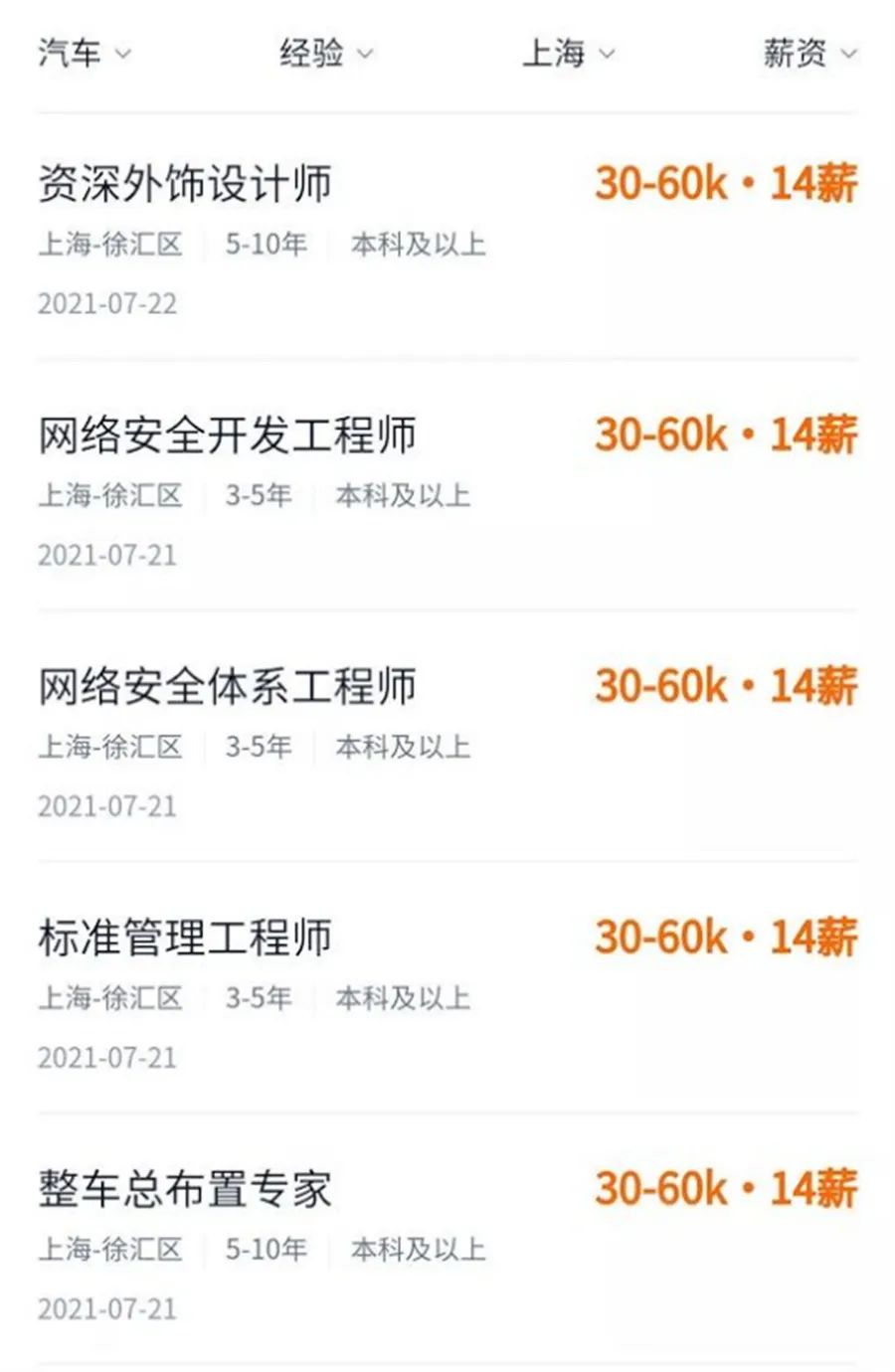 人才方面,从6月份开始,小米陆续对外招聘整车领域和自动驾驶等领域人才。从小米公布的薪资待遇,其招聘职位的月薪在20~60k之间,14薪。待遇比起一众新造车势力高出不少。