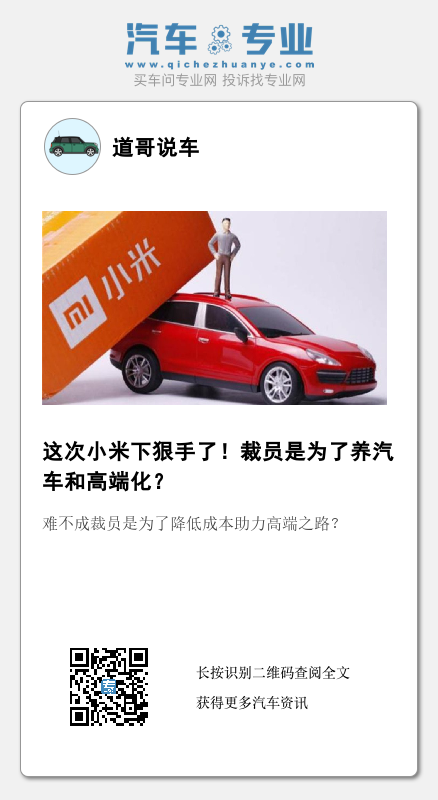 一般情况下,企业裁员通常会被认为是公司经营出现了问题,而不少外界人士却将小米“裁员”情况认定为,其将精力转入造车行当了。甚至置身其中的某小米员工也相信外面看来的小道消息,一是雷军最近宣布要冲击高端,对标苹果,二是小米要造车,把多余资金利用起来。