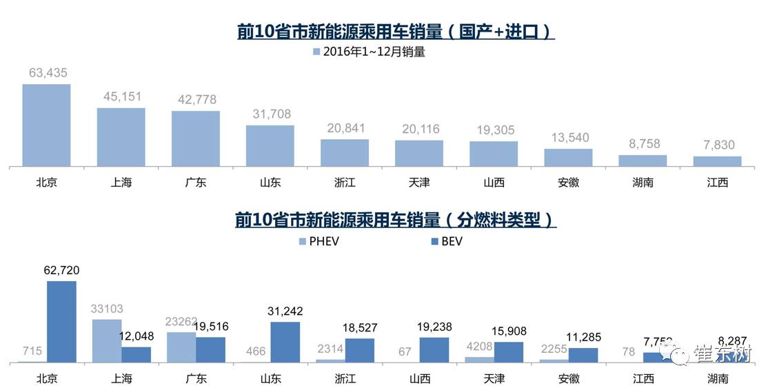 16年的全年的交强险汽车销量数据体现北京的新能源车达到63415台,其中基本是纯电车型,插混占到1%,由此也决定了全国新能源车市场的发展模式是纯电为主的特征,地方特色决定市场模式。而上海的上牌是4.5万台,其中70%是插混,纯电动的需求较弱,形成上海模式。由于上海的新能源车数量低于北京,因此北京纯电模式成为全国的短期主导模式。