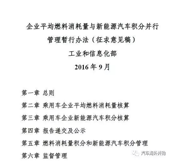 工信部《企业平均燃料消耗量与新能源汽车积分并行管理暂行办法》(征求意见稿) (简称《CAFC+ZEV办法》)自2016年9月22日公布后征求意见已结束。2016年12月5日,《CAFC+ZEV办法》提交世界贸易组织技术性贸易壁垒协定委员会(WorldTrade Organization/ Committee onTechnical Barriers to Trade,WTO/TBT)进行了分发通报,到2017年2月6日已按照约定的时间完成了通报。
