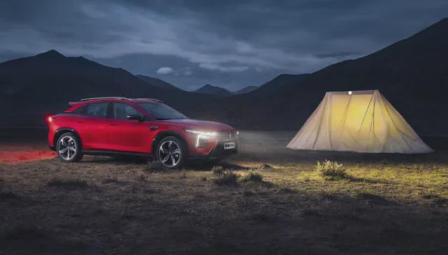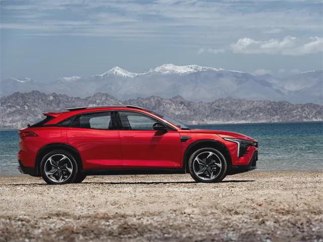 新车侧面拥有轿跑SUV车型优美顺滑的线条,为增强其视觉效果,其在外后视镜壳、车门边框、侧裙、轮眉、车顶行李架等处还使用黑色的涂装,配合大尺寸五星斗战式轮毂、“战斗红”刹车卡钳,蓄势待发的低趴造型运动气息十分突出。此外,隐藏式门把手在降低风阻的同时也提升了科技感。
