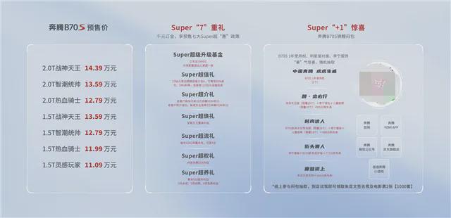 2月20日,一汽奔腾全新轿跑SUV——奔腾B70S于长春一汽蔚山工厂正式迎来下线并同时开启预售,新车共推出1.5T与2.0T两种动力共7款车型,预售价格区间为11.09-14.39万元。与此同时,一汽奔腾还针对新车采用全新的线上订车模式,并为订车用户提供Super“7”重礼及Super“+1”惊喜礼包,可谓诚意十足。