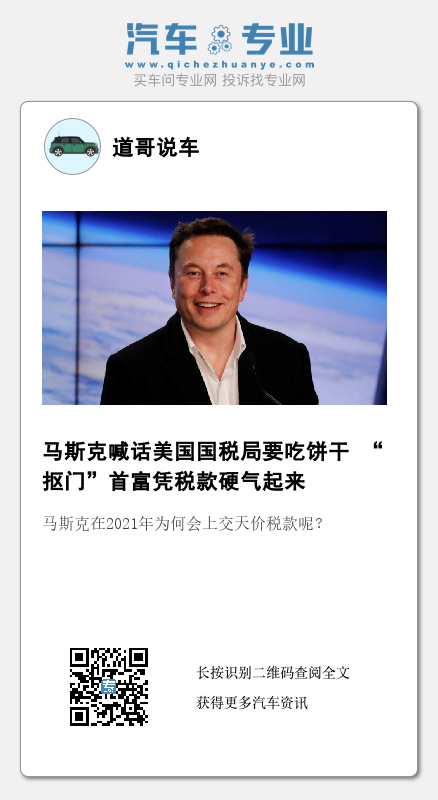 而马斯克也十分硬气,仗着自己史上纳税额最高的个人身份调侃起了美国国税局,大有让美国国税局对他表示表示的意思,其在回复中直言自己要登门拜访美国国税局,“下次去华盛顿,我要去美国国税局打个招呼,毕竟我在去年成为了历史上纳税额最高的个人。或许他们能给我吃块饼干之类的……”