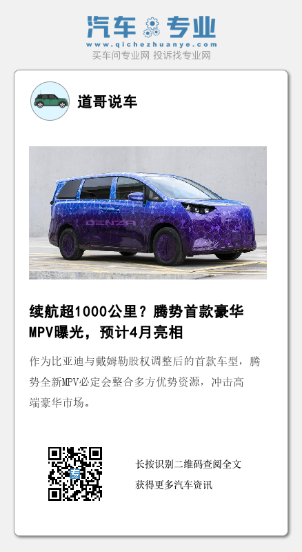 近期,腾势品牌的一系列的动作引发了外界的高度关注。比亚迪集团品牌标识焕新,汽车产业的乘用车板块各品牌将使用各自的品牌标识,腾势品牌也在其中。作为比亚迪与戴姆勒股权调整后的首款车型,腾势全新MPV必定会整合多方优势资源,冲击高端豪华市场。关于更多腾势MPV的信息,我们也将持续关注报道。