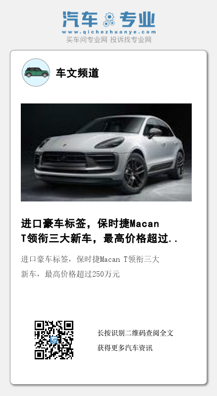 在内饰部分,保时捷Macan T与普通版车型保持一致,在新意上虽然较为有限,可用料方面还是相当考究,配置上也紧跟科技发展潮流,豪华感扑面而来。其在动力上搭载2.0T高功率涡轮增压发动机,最大功率达到265马力。与之匹配7速PDK变速箱,加上Sport Chrono组件,驾驶体验无需多言。当然四驱系统也没有缺席,动态表现更为出色。该车预售价为61.8万元,或许咬咬牙你也可以买一辆。