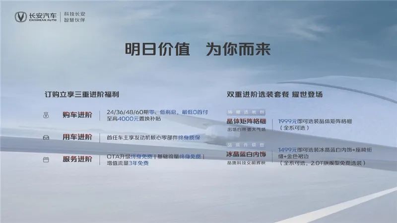 2月28日,第二代CS75PLUS终于迎来上市,新车共推出3款1.5T和3款2.0T共6款车型,售价区间12.49-15.49万元。与此同时,用户订购立享三重进阶福利:购车进阶福利,最长60期零、低利息,最低0首付及至高4000元置换补贴;用车进阶福利,首任车主享发动机核心零部件终身质保;服务进阶福利,OTA升级终身免费、基础流量终身免费、增值流量3年免费。此外,长安汽车还为用户准备了格栅选装包、品质升级包等双重进阶选装套餐。