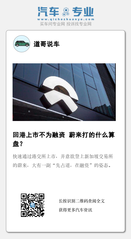 如此看来,快速通过港交所上市,并意欲登上新加坡交易所的蔚来,大有一副“先占道,在融资”的姿态。