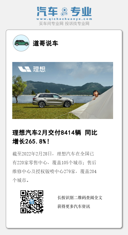 截至2022年2月28日,理想汽车在全国已有220家零售中心,覆盖105个城市;售后维修中心及授权钣喷中心279家,覆盖204个城市。