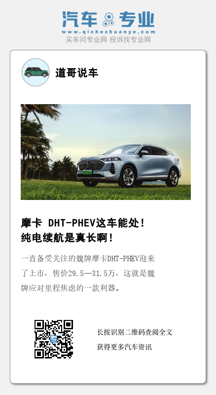 有人说,油太贵开电车多省钱,话是没毛病,但是我焦虑啊!电量带来的焦虑我相信每一个用智能手机的人都有所体会,不过手机可以随时充电,就算出门在外也能找到共享充电宝,那车没电了又不能快速找到充电桩咋整?对于这个问题咋解决,魏牌已经给出了答案。3月1日晚,一直备受关注的魏牌摩卡DHT-PHEV迎来了上市,售价29.5—31.5万,这就是魏牌应对里程焦虑的一款利器。