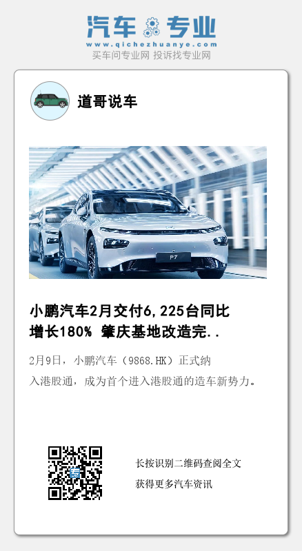 近日,《道哥说车》编辑从小鹏汽车官方获悉,2022年2月,小鹏汽车总交付6,225台,同比增长180%。在单车型交付方面,小鹏P7交付3,537台,同比增长151%;小鹏P5交付2,059台;小鹏G3系列交付629台。