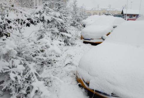 这突如其来的雪,也让人们深深的体会冬天,仿佛秋天还未来临,冬就将至了。漠河城区就笼罩在一层白蒙蒙的雪幕当中,室外停放的车辆也都盖满了白雪,海拔较高的林区雪势较大,已经完全被积雪覆盖,松枝上布满了厚厚的积雪。
