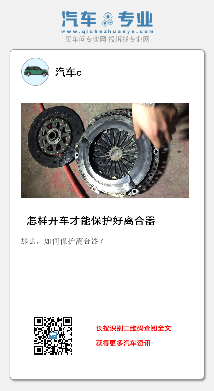 离合器是汽车必备的部件这一。它是动力和传动系统的切断和结合桥梁,可以切断发动机动力,来保证汽车起步时平稳起步。如果它一旦烧坏,那你的爱车也就只能叫拖车或者叫维修员到现场维修了。那么,如何保护离合器?
